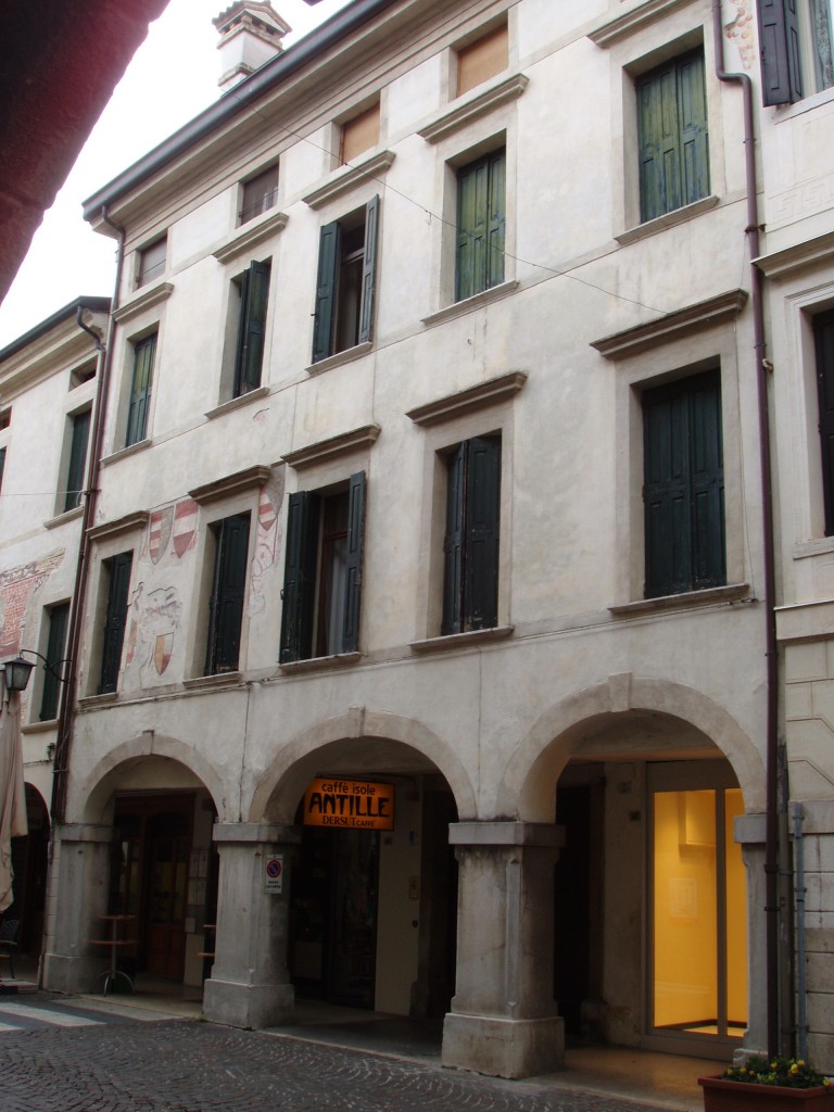 La composta impostazione architettonica dell’attuale facciata di casa Bisol, palazzo del XV secolo, trattata a marmorino nel corso del ‘700, nascondeva sottostanti decorazioni ad affresco riferibili al ‘400.