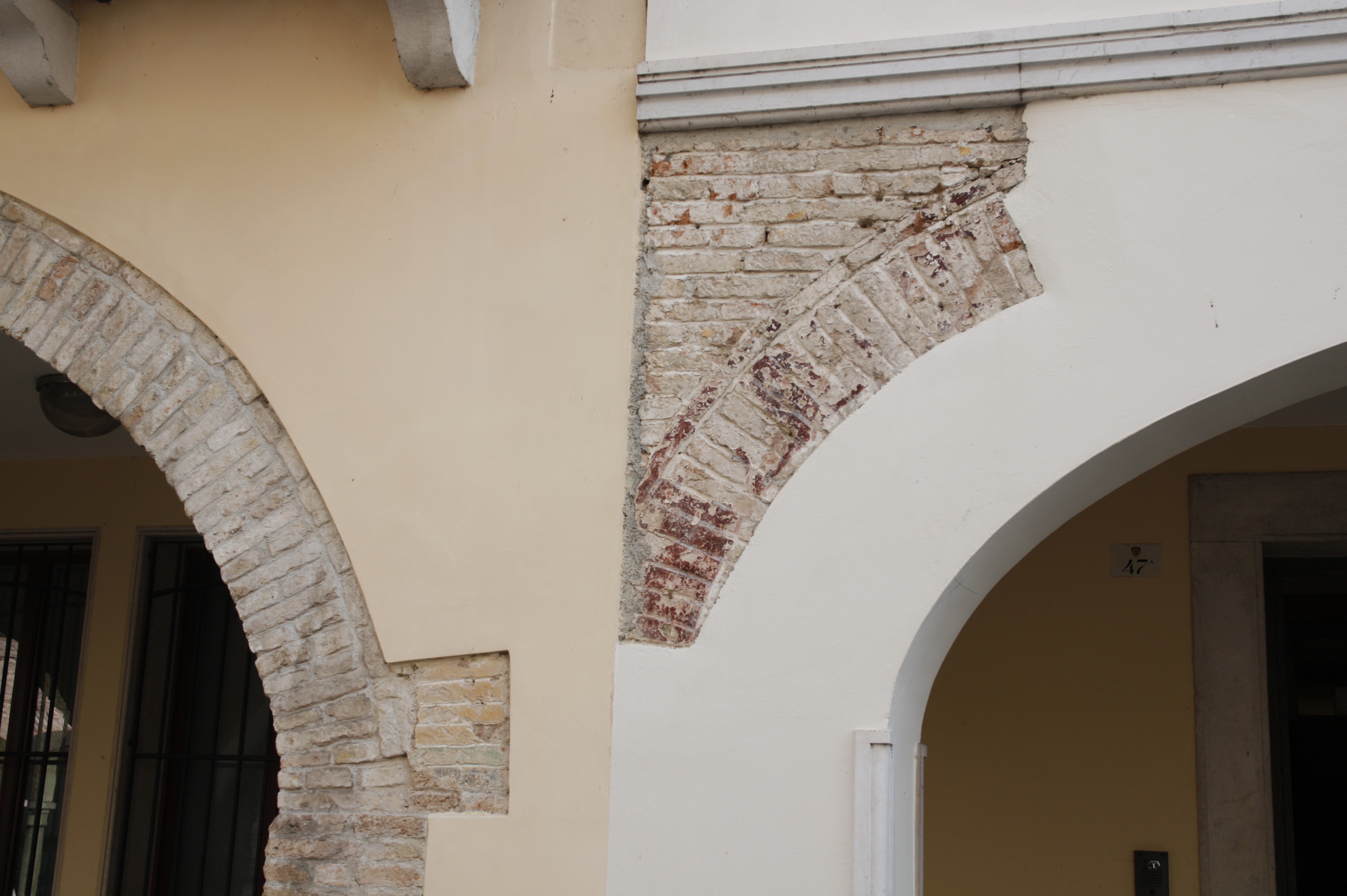 Al piano terra è messa in evidenza una traccia di affresco e l’antica muratura.