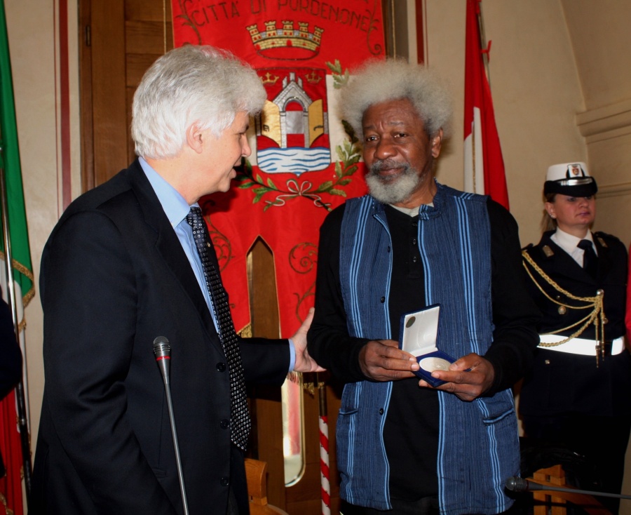 Il sigillo della città a Wole Soyinka, premio Nobel per la letteratura nel 1986, e protagonista della 18° edizione del festival«Dedica». Sul libro d’onore del Comune ha lasciato scritto: