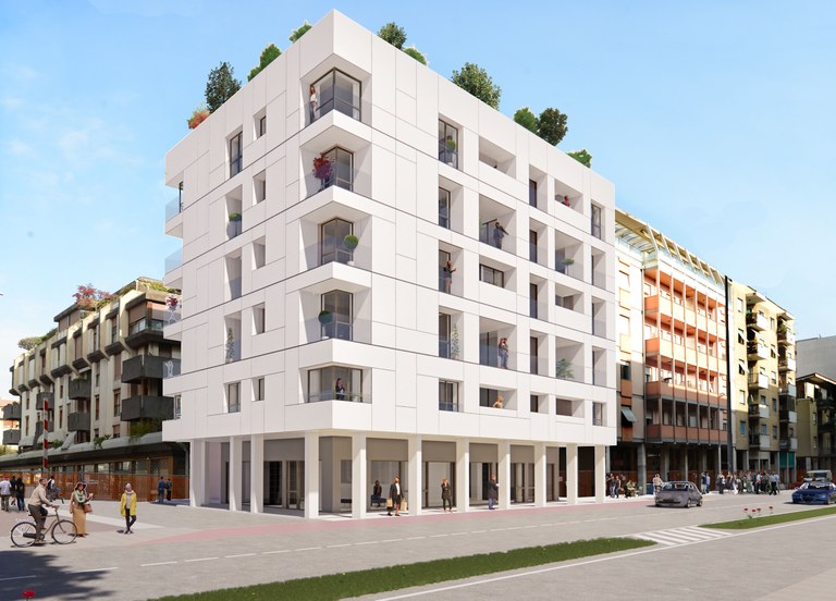 La riqualificazione del palazzo - Il restyling, con l’avvio lavori previsto in estate, fornirà al palazzo una nuova «pelle», una facciata di lastroni di ceramica alternate a terrazze e logge. Un effetto di «pieni-vuoti» e «chiaro-scuri», con il verde e le piante come elemento ricorrente nelle terrazze a vetri che si affacciano lungo la strada, e un giardino pensile all’attico. L’efficientamento energetico garantirà invece maggiore risparmio di consumi e spese, portando gli appartamenti in classe energetica A, con l’eliminazione del gas metano. Dalla ristrutturazione si otterranno circa 15 abitazioni su sei piani rialzati, con nuove cantine e posti auto dotati di colonnine per la ricarica dei veicoli elettrici. E anche il piano terra, dove era ospitato lo storico negozio di strumenti musicali del maestro Biscontin, verrà sistemato per ospitare attività commerciali. Per Farinelli «la riqualificazione del palazzo e del negozio partecipano di fatto alla riqualificazione complessiva del viale», mentre Della Riccia ha affermato che «il Comune di Pordenone ci consente di lavorare bene e velocemente, lo sottolineo perché non è la normalità, e questa modalità operativa andrebbe presa da esempio da altri Comuni più «assopiti».