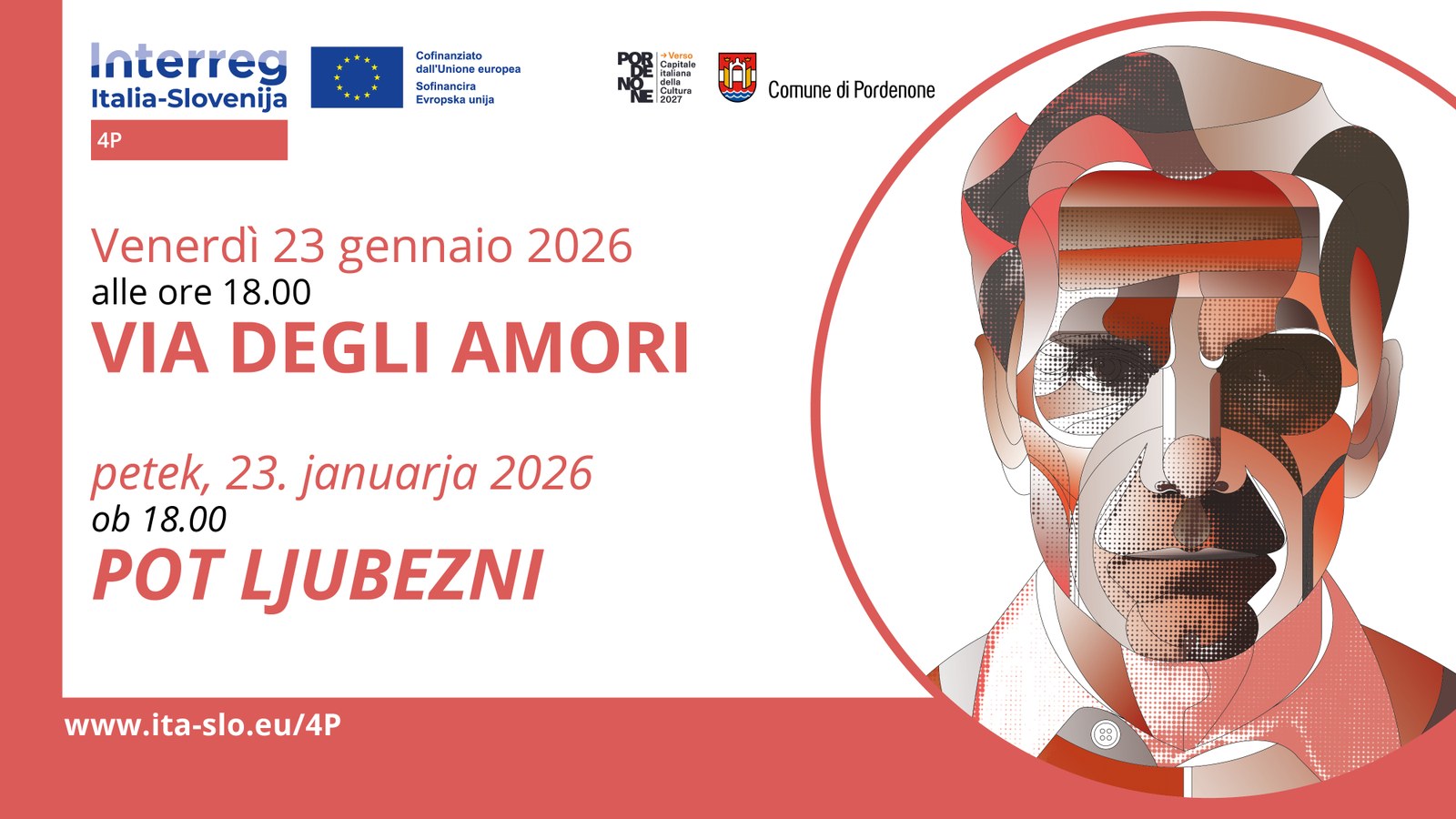 - Venerdì 23 gennaio 2026 presso lo spazioZero a partire dalle ore 18:00 sarà presentata al pubblico la raccolta di poesie “Via degli Amori” di Pier Paolo Pasolini, nella sua nuova edizione bilingue, ad 80 anni dalla sua prima pubblicazione.