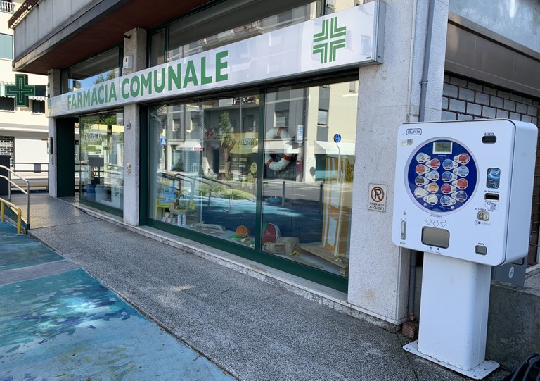 In viale Grigoletti potete trovare un distributore di ultima generazione, con 18 prodotti, lateralmente rispetto all'ingresso della farmacia. [MAPPA]